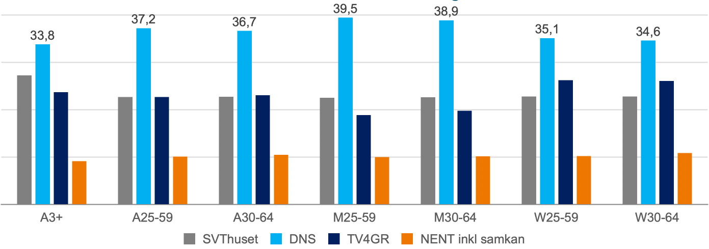 - DNS är största TV-hus i alla säljmålgrupper och 3+ (AD).
